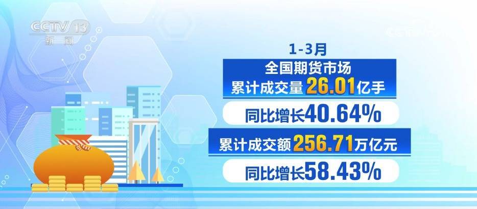 r数据显示,1—3月全国期货市场累计成交量为26.01亿手,累计成交额为256.71万亿元,同比分别增长40.64%和58.43%。